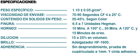 Puede ser aplicado con brocha o sistema de aspersión convencional. Se recomienda lavar el equipo inmediatamente, después de que se terminó de utilizar usando ADELGAZADOR HF-1600.