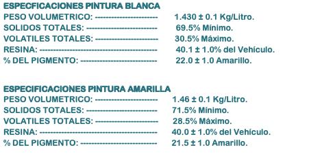 Se recomienda para marcar zonas de TRANSITO en fábricas, almacenes, estacionamientos, calles y de forma especial, como RAYA DE CARRETERA. Cumple con las Normas de la Secretaría de Comunicaciones y Transportes y la Norma Oficial Mexicana NOM-U28.