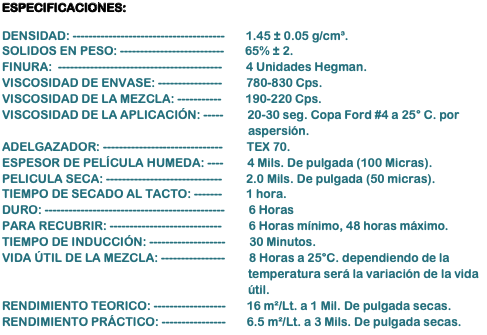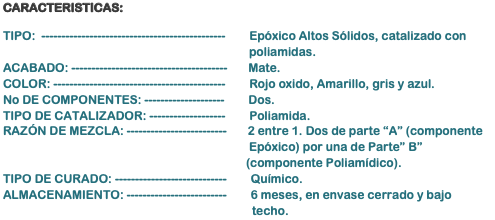 Recubrimiento anticorrosivo de alta calidad, diseñado a base de resinas epóxicas, que son catalizables con resinas poliamídicas.