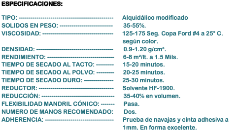 Esmalte alquidal de primera calidad, con las mismas propiedades y Características al ESMALTE H3, pero con un poder cubriente menor. Recomendado por un poder anticorrosivo, no es necesario aplicar fondo antes de pintar con él.